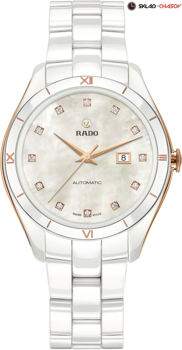 Элегантная модель выполнена в моноблочном корпусе из высокотехнологичной керамики. Циферблат украшен брильянтами. Окошко даты в положении 3 часа. Прозрачная задняя крышка из сапфирового стекла.