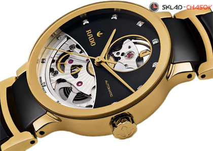 Элегантная женская модель, скелетонированный циферблат украшен 12 бриллиантами общим весом 0.037 ct