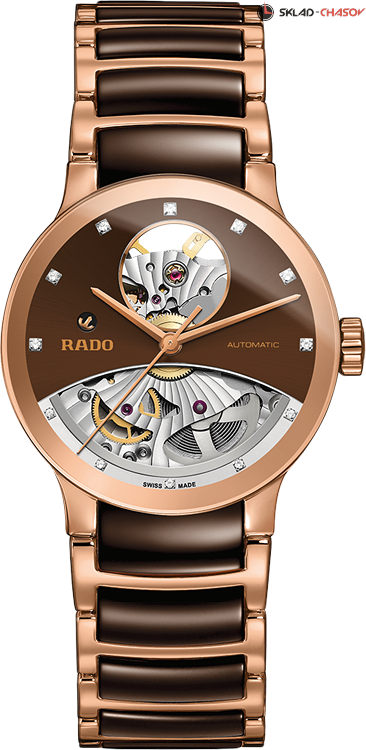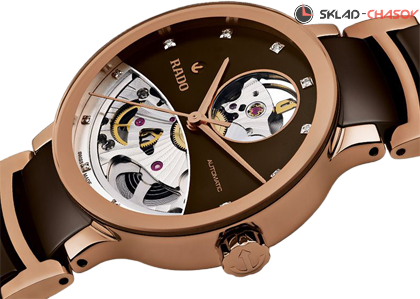 Элегантная женская модель, скелетонираванный циферблат украшен 12 бриллиантами общим весом 0.037 ct
