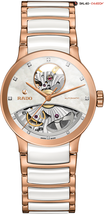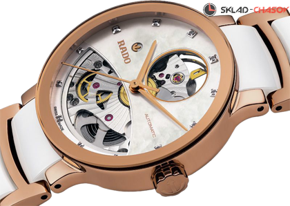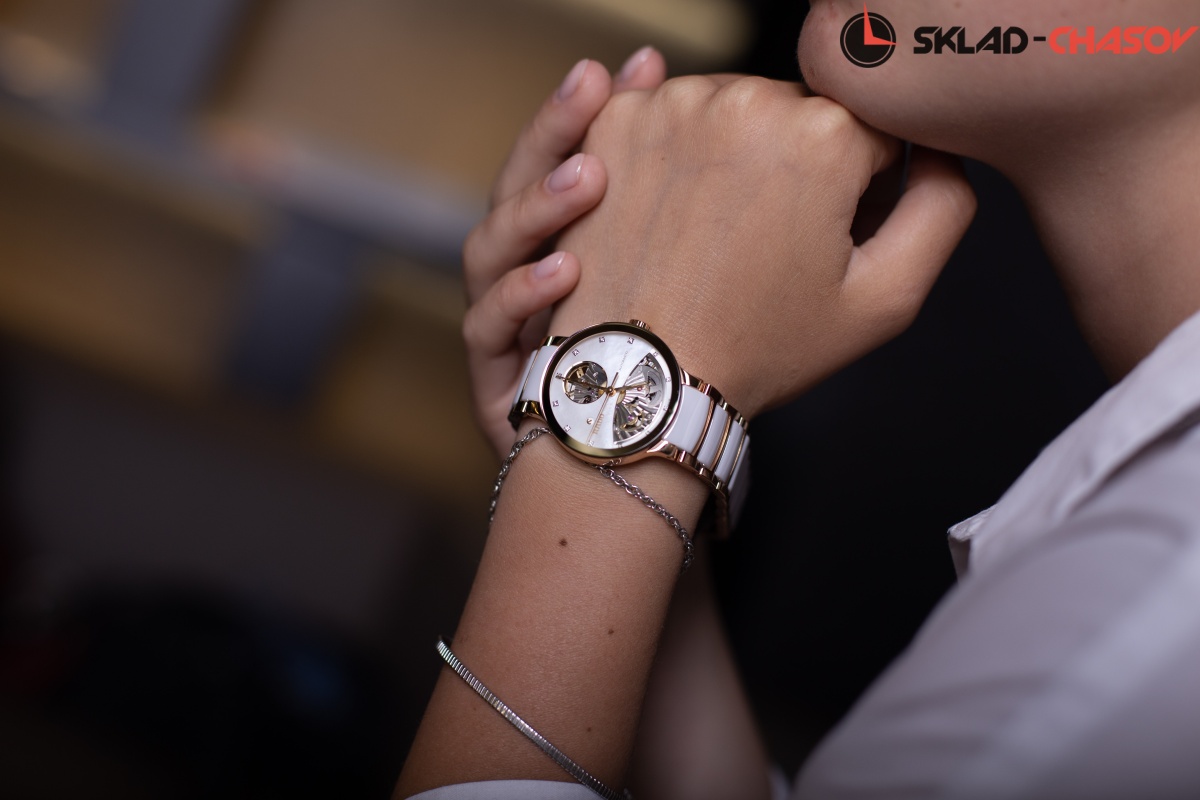 Элегантная женская модель, скелетонираванный циферблат украшен 12 бриллиантами общим весом 0.037 ct