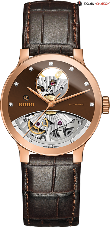 Элегантная женская модель, скелетонираванный циферблат украшен 12 бриллиантами общим весом 0.037 ct