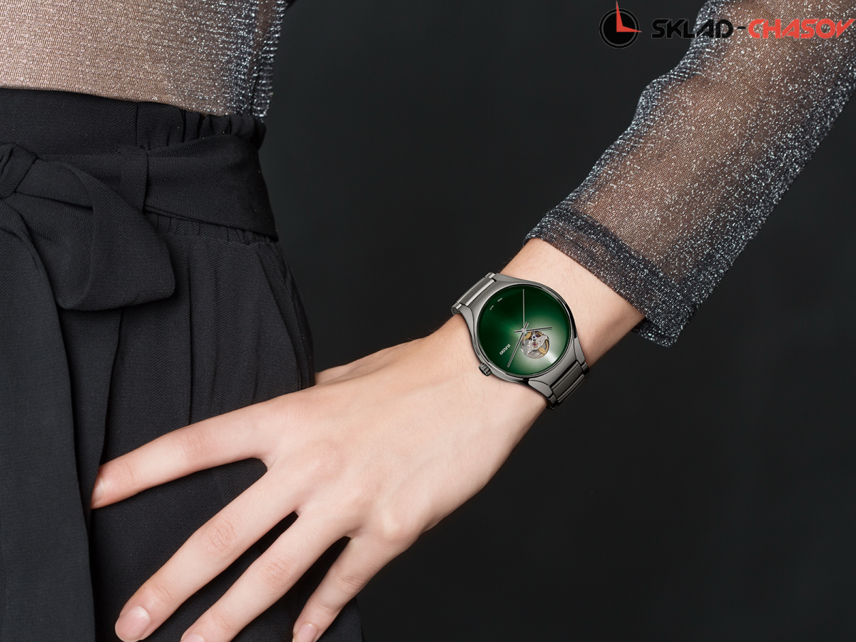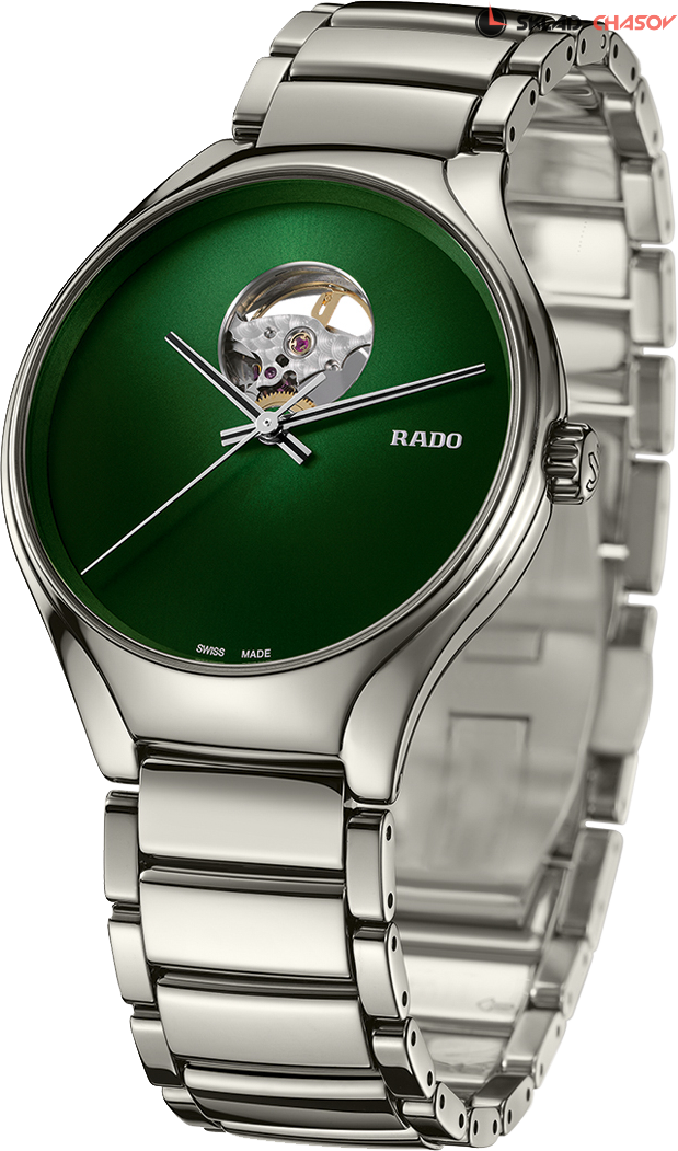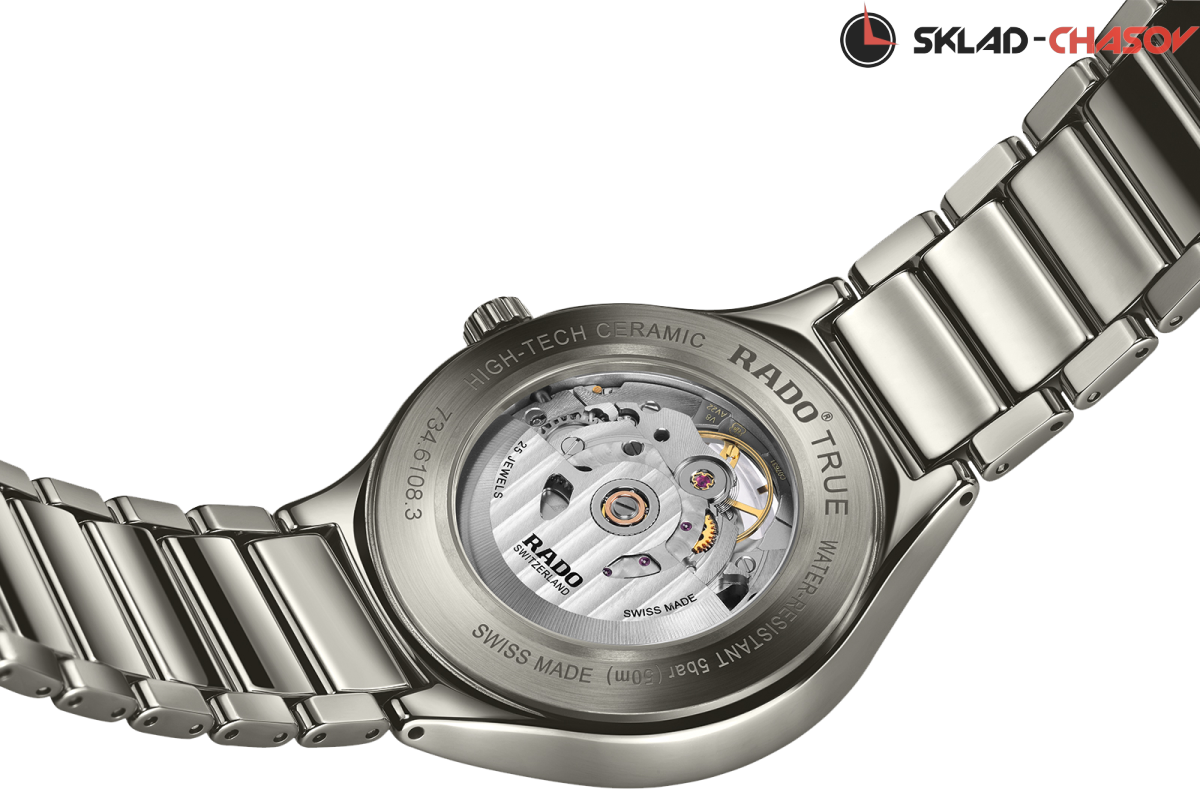 Модель True Secret оснащена швейцарским часовым механизмом, работу которого можно увидеть через отверстие на 12-часовом делении циферблата. Прозрачная задняя крышка из сапфирового стекла.
