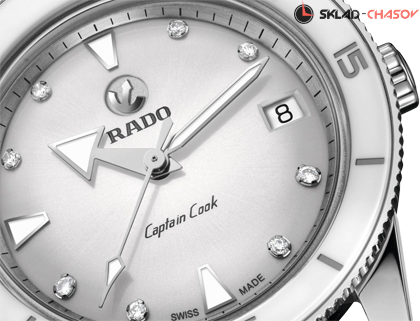 Керамический безель. Циферблат украшен 8 бриллиантами общим весом 0,064 ct