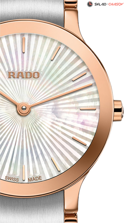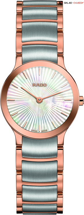 Женская модель. Индикация часов и минут центральными стрелками. Циферблат из натурального перламутра.