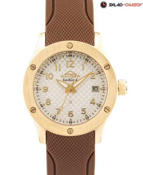 Кварцевые часы. Механизм японской фирмы Miyota. Корпус из нержавеющей стали золотого цвета. Минеральное стекло. Циферблат белый. Браслет из полимерного материала. Водонепроницаемость при давлении 3 атм. WR 30. Указатель даты. Диаметр корпуса 34 мм. Женские часы.