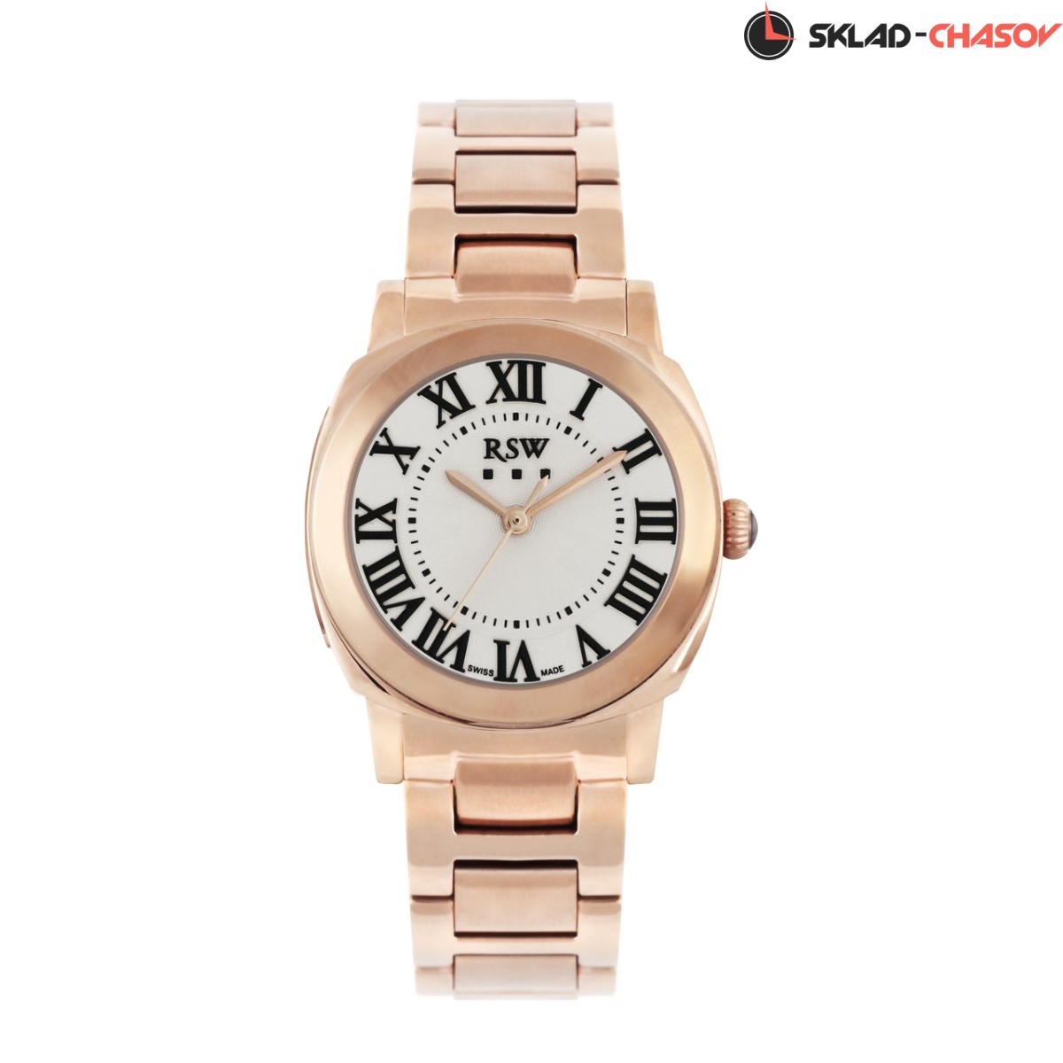 Кварцевые Женские часы RSW, коллекция Romeo (RSWL114-RR-1), производство ШВЕЙЦАРИЯ, диаметр - 30 мм, материал корпуса - Розовый PVD, Браслет, материал браслета - Розовый PVD, циферблат - Белый, Римские цифры