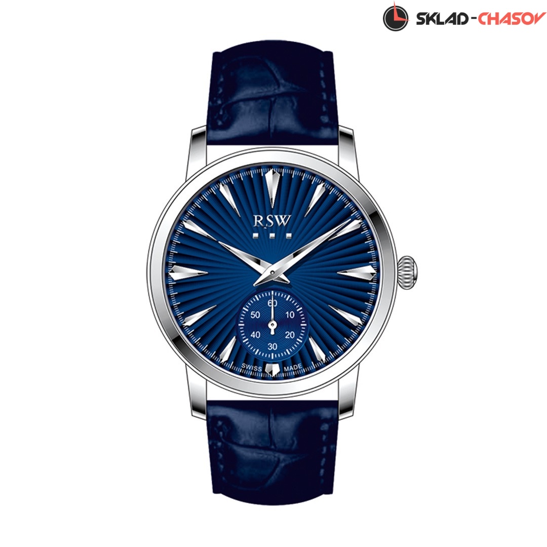 Кварцевые Женские часы RSW (RSWL111-SL-9), производство ШВЕЙЦАРИЯ, диаметр - 30 мм, материал корпуса - Сталь, Ремень, материал браслета - Кожа, циферблат - Синий, Метки
