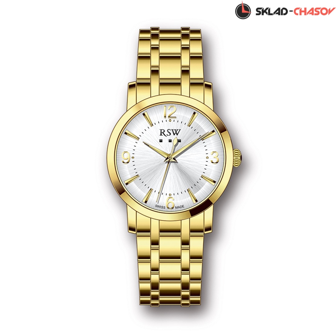 Кварцевые Женские часы RSW (RSWL113-GG-1), производство ШВЕЙЦАРИЯ, диаметр - 30 мм, материал корпуса - Желтый PVD, Браслет, материал браслета - Желтый PVD, циферблат - Серебристый, Арабские цифры и Метки