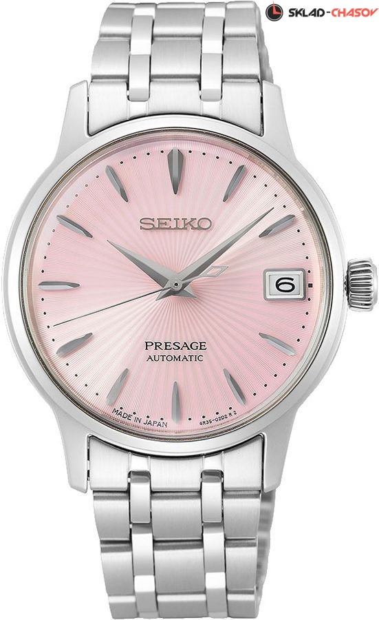 Женские механические наручные часы Seiko из коллекции Presage Cocktail Time. Дизайн серии Cocktail Time разработан совместно с известным Японским барменом Шинобу Ишигаки, цвет циферблата данной модели соответствует цвету одного из его коктейлей, в данной модели это коктейль Cosmopolitan. В механизме 23 камня, частота 21600 полуколебаний в час. Запас хода 41 час. Функция stop-second. Возможность ручного завода. Циферблат закрывает минеральное стекло Hardlex повышенной прочности. Завинчивающаяся прозрачная задняя крышка. Браслет с раскладывающейся застежкой. Гарантия 2 года.