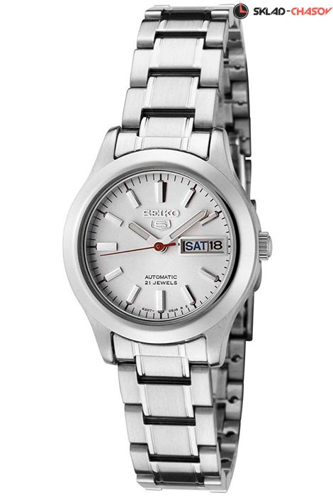 Женские механические наручные часы с автоподзаводом Seiko SYMD87K1 коллекции Seiko 5. Калибр механизма — 4207. Запас хода - не менее 40-ка часов. 21 600 полуколебаний в час. Количество камней - 21. На данной модели отображается дата и день недели. Стрелки и метки покрыты люминесцентным напылением LumiBright (светятся в темноте). Установлено минеральное стекло повышенной прочности Hardlex Crystal. Завинчивающаяся задняя крышка часов. Стальной браслет. Водонепроницаемость WR (3 атм).