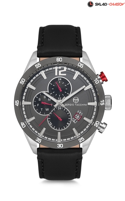 Корпус: нержавеющая сталь 316L, цвет серебристый, размер Ø45 мм, водозащита 10 АТМ. Ремешок: натуральная кожа, цвет черный, размер 22x20 мм. Механизм: японский кварцевый, калибр Miyota JP15. Цвет циферблата черный, стекло минеральное.