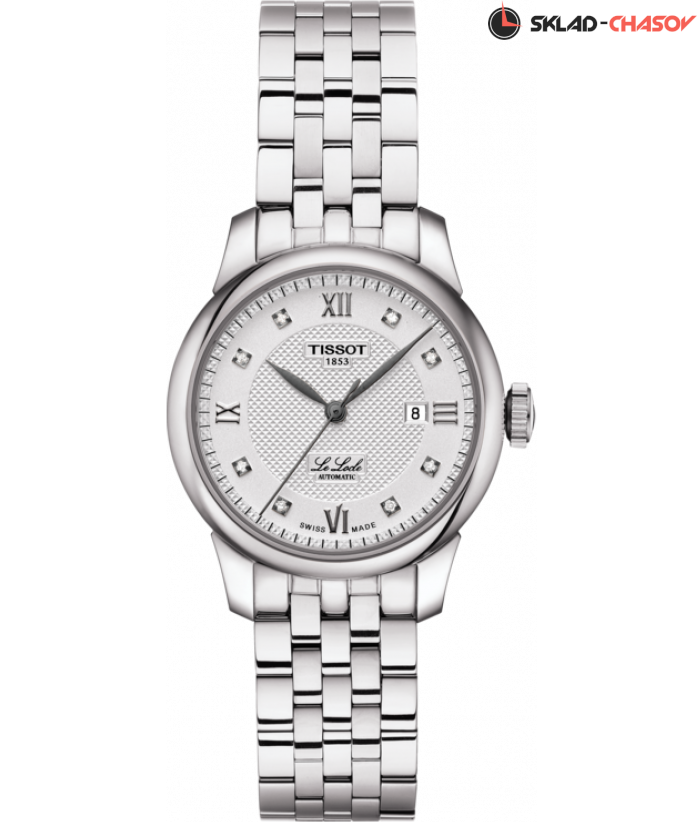 Классическая женская модель, индикация часов, минут и секунд центральными стрелками, окошко даты в положении 3 часа. Циферблат украшен бриллиантами.