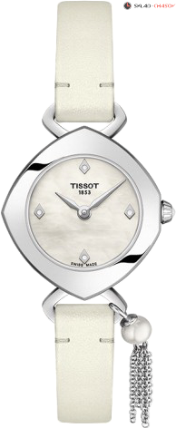 Женственный дизайн, необычная форма корпуса. Индикация часов, минут. Циферблат украшен бриллиантами.