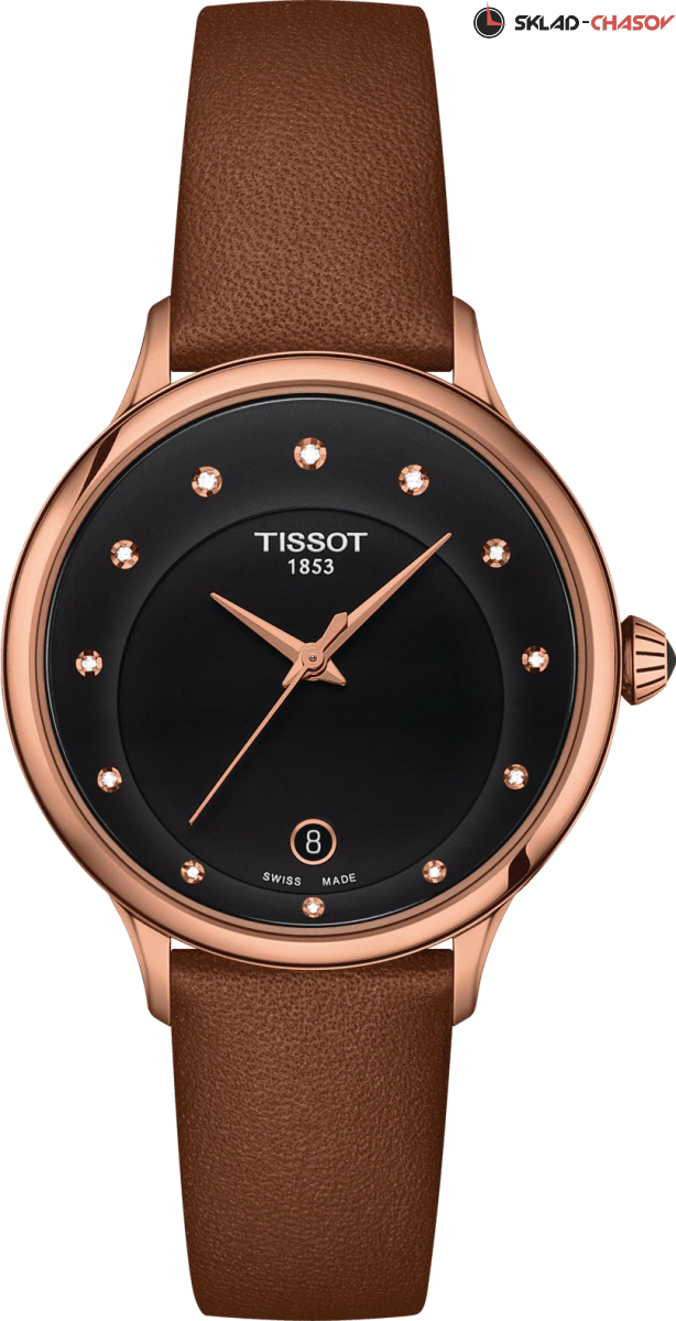 Классическая женская модель, циферблат украшен 12-ю бриллиантами общим весом 0.0361 карат.