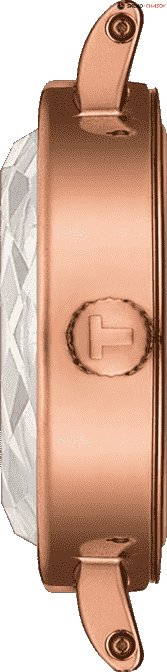 Классическая женская модель, индикация часов, минут, перламутровый циферблат. Сапфировое стекло украшено огранкой в виде бриллианта.