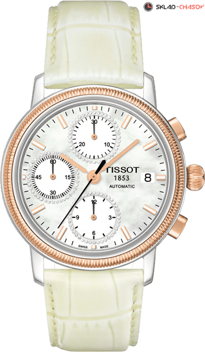 Эти часы - отличный выбор ценителей точности. Безель выполнен из золота 18К. Циферблат из натурального перламутра. Малый секундный счетчик расположен на 9 часов, 30-минутный счетчик хронографа на 12 часов и 12-часовой счетчик на 6 часов.