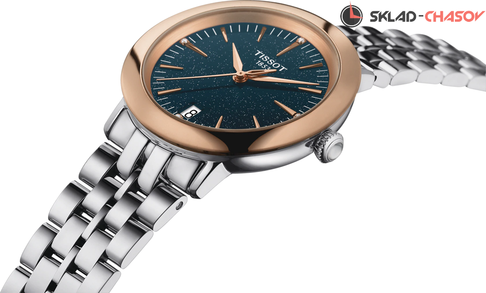 Ювелирные часы, предназначенные для активных женщин, желающих выразить свое изящное женское очарование с помощью роскошных и современных часов. Корона изящно украшена кабошоном в форме пирамиды. Его современный дизайн подчеркивается стальным корпусом с безелем из чистого золота 18 карат. Циферблат украшен 4 бриллиантами. Противовес секундной стрелки скелетонирован.