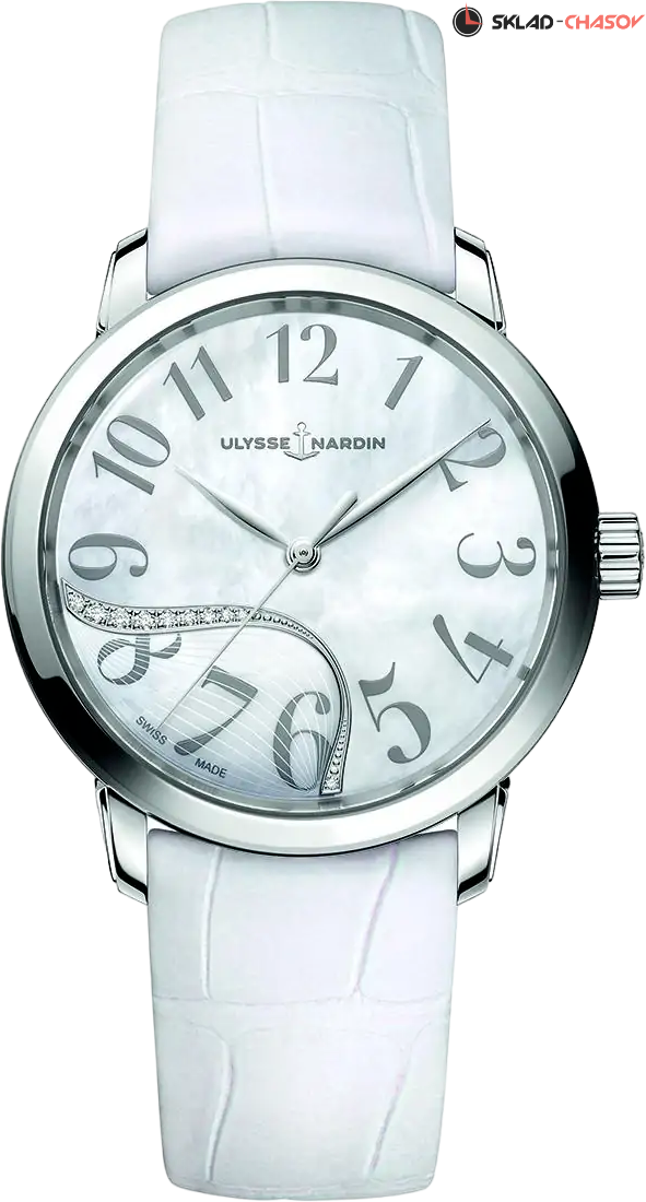 Часы Classico Jade с ремешком неброского и аристократичного оттенка, с переливами бриллиантов на изгибающихся линиях чарующего перламутрового циферблата, аккуратно подчеркивают женственный образ. Бриллианты в нижней левой части циферблата выглядят как изящный гребень волны или капли росы на нежной кромке листа.