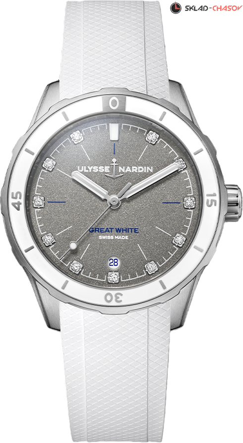 В созданной Ulysse Nardin коллекции Diver есть много интересного, особенно когда дело касается деталей. Слегка вогнутый безель с концентрическими кольцами придает часам визуальную глубину, а зернистая текстура циферблата, грани на креплениях и насечки на безеле подчеркивают динамичность модели.