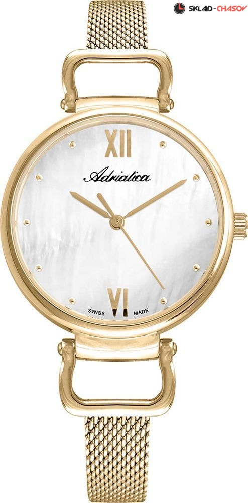 Элегантные женские наручные часы на стальном браслете миланского плетения. Точность хода обеспечивает швейцарский кварцевый механизм ETA 902. Вес часов всего 35 грамм. Гарантия 2 года.