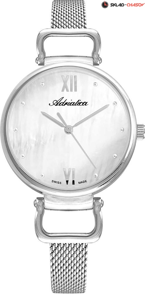 Элегантные женские наручные часы на стальном браслете миланского плетения. Точность хода обеспечивает швейцарский кварцевый механизм ETA 902. Вес часов всего 35 грамм. Гарантия 2 года.