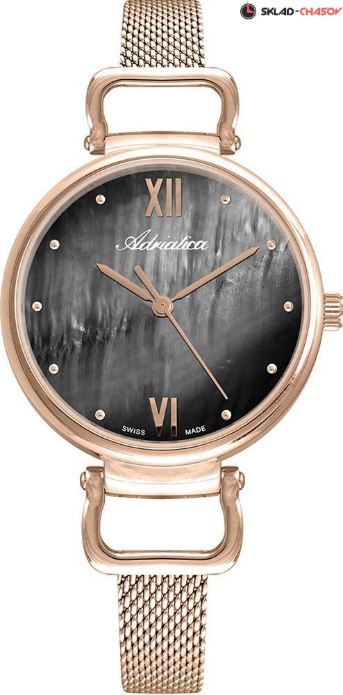 Элегантные женские наручные часы на стальном браслете миланского плетения. Точность хода обеспечивает швейцарский кварцевый механизм ETA 902. Вес часов всего 35 грамм. Гарантия 2 года.