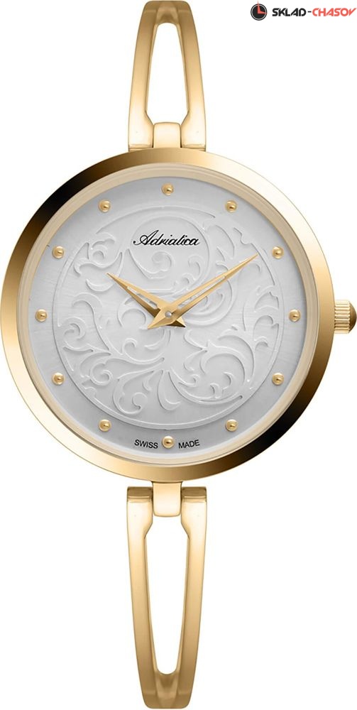 Изящные женские наручные часы Adriatica 3746.1141Q, выполненные в неподвластном времени золотом цвете. Модель красиво украсит запястье любой элегантной леди. На циферблат нанесен узор арабески, дополняют его стрелки и часовые метки в золотом цвете. Сердцем модели является швейцарский кварцевый механизм Ronda 762. Вес всего 40 грамм, что прекрасно подходит для ежедневного ношения. Гарантия 2 года.