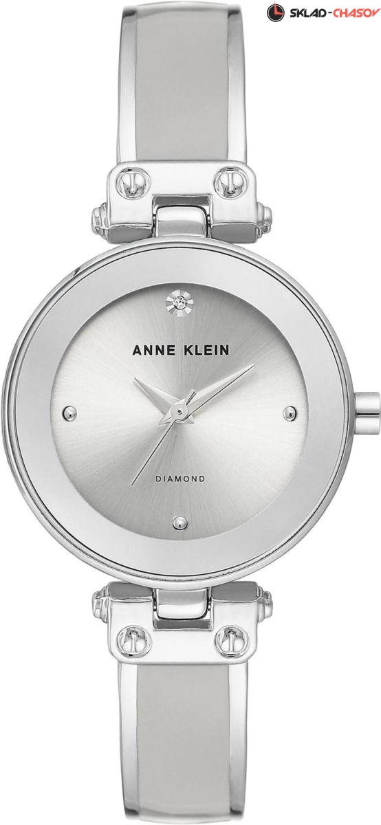 Женские наручные часы Anne Klein на браслете. Циферблат украшен бриллиантом 0,001К. Браслет с покрытием эмалью. Гарантия 2 года.