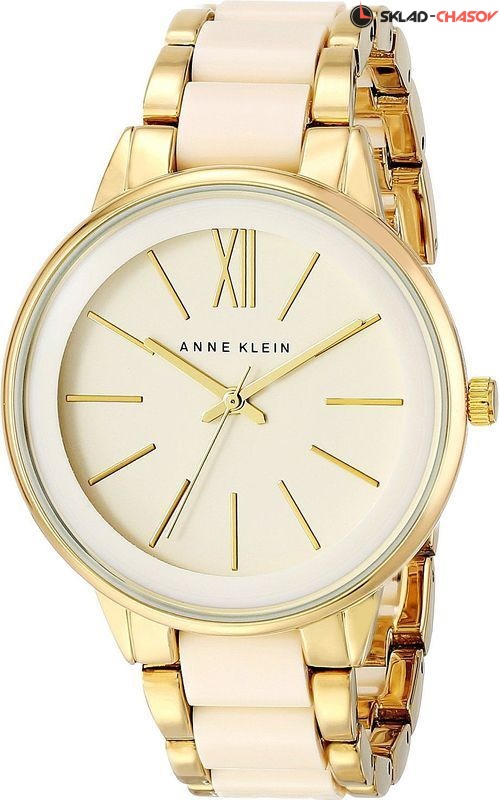 Стильные женские часы Anne Klein в круглом корпусе. Пластиковый безель. Браслет с пластиковыми вставками. Гарантия 2 года.