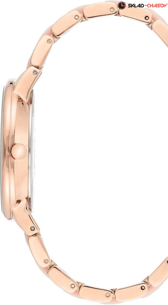Стильные женские часы Anne Klein в круглом корпусе. Пластиковый безель. Браслет с пластиковыми вставками. Гарантия 2 года.