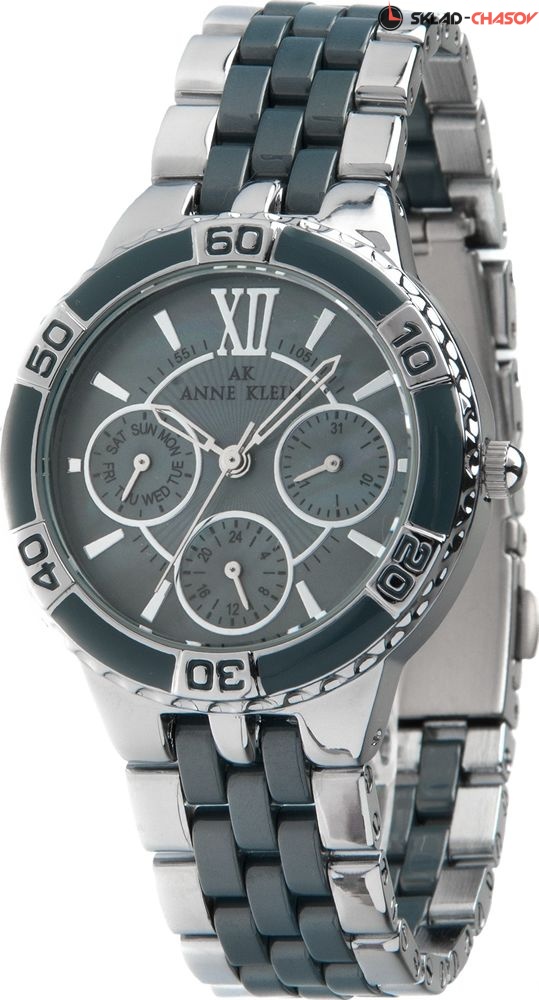 Женские наручные часы Anne Klein на стальном браслете с керамическими вставками. На отдельных циферблатах отображаются число и день недели, а так же 24-х часовой формат текущего времени. Гарантия 2 года.