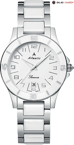 Керамический безель. Заводная головка с защитой украшена камнем в форме кабошона.Браслет из нержавеющей стали с вставками из высокотехнологичной керамики белого цвета.Механизм Ronda 705. Гарантия 2 года.