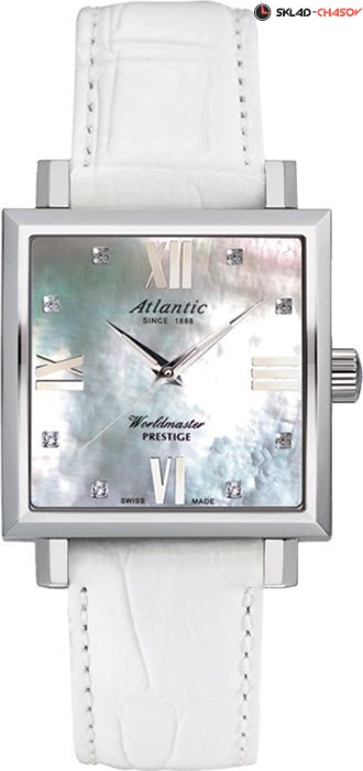 Женские наручные часы в квадратном стальном корпусе на кожаном ремешке. Перламутровый циферблат украшен кристаллами. Точность хода обеспечивает швейцарский кварцевый механизм ETA F04.111. Ремешок из натуральной кожи с классической застежкой. Гарантия 2 года.