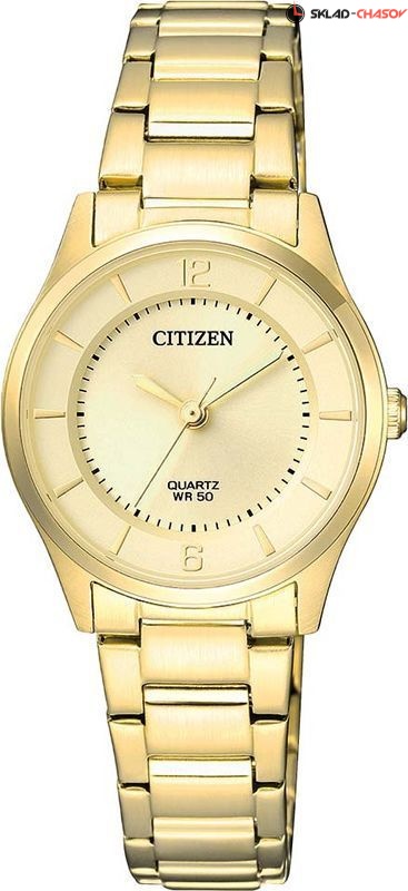 Классическая модель женских наручных часов от Citizen. Браслет с раскладывающейся застежкой, застежка с системой блокировки. Гарантия 1 год.