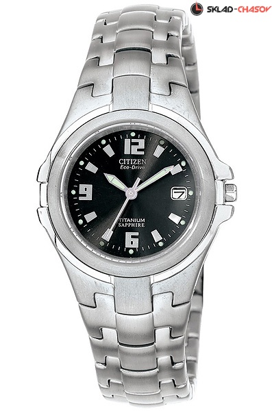 Женские кварцевые наручные часы Citizen EW0650-51F коллекции Eco-Drive Titanium. Калибр механизма — E011. Это практичная модель, поскольку аккумулятор на солнечной батарее заряжается как от солнечного, так и от искусственного света и не требует частой замены. Срок работы аккумулятора с полным зарядом — около 6-ти месяцев. Примерный срок службы аккумулятора — 10 лет. Присутствует функция информирования о недостаточном заряде. На данной модели отображается дата (только число). Корпус и браслет выполнены из титана серого цвета. На циферблате круглой формы черного цвета установлено сапфировое стекло. Стрелки и метки покрыты люминесцентным напылением, которые светится в темноте. Водонепроницаемость WR100 (10 атм). Завинчивающаяся задняя крышка.