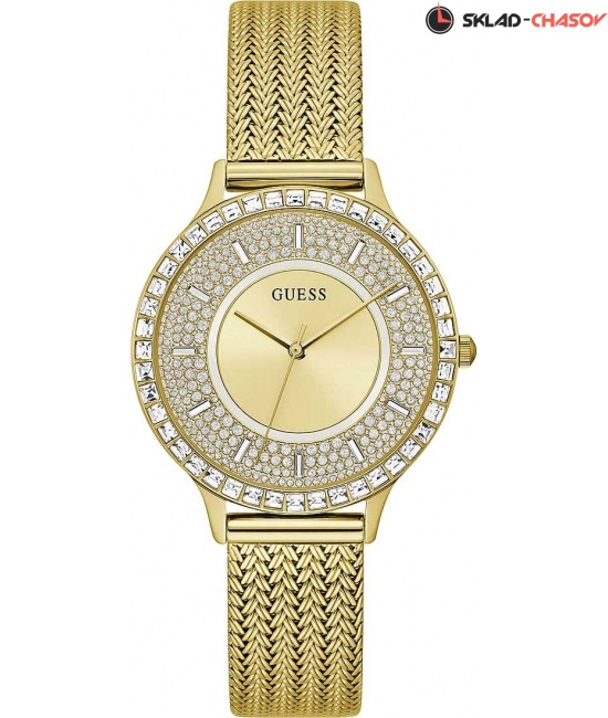 Часы женские от Guess, США. В качестве материала используется стальные корпуса c миланским плетением. Цвет циферблата имеет золотые тона. Часы кварцевые с водозащитой до 5 ATM. Корпус c минеральным стеклом. В дизайне часов используется золотые оттенки циферблата. Отточенный дизайн превращает эти наручные часы Guess в элегантный аксессуар. Производитель дает гарантии в авторизированных центрах марки Guess