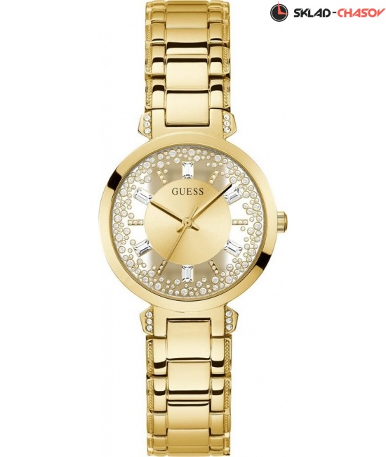 Часы женские  от Guess, США. В качестве материала используется стальные корпуса c стальным браслетом. Цвет циферблата имеет золотые тона. со штрихами. Часы кварцевые с водозащитой до 5 ATM. Корпус c минеральным стеклом. В дизайне часов используется золотые оттенки циферблата. Отточенный дизайн превращает эти наручные часы Guess в элегантный аксессуар. Производитель дает 24 месяца гарантии в авторизированных центрах марки Guess