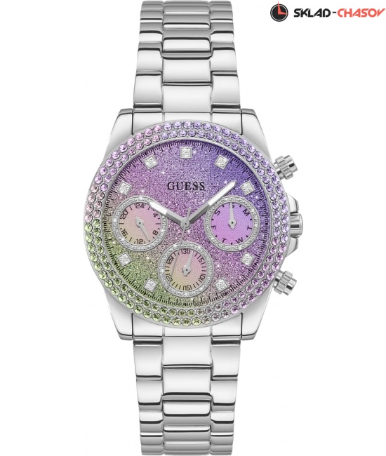 Часы женские от Guess, США. В качестве материала используется стальные корпуса c стальным браслетом. Цвет циферблата имеет фиолетовые тона. со штрихами. Часы кварцевые с водозащитой до 5 ATM. Корпус c минеральным стеклом. В дизайне часов используется фиолетовые оттенки циферблата. Отточенный дизайн превращает эти наручные часы Guess в элегантный аксессуар. Производитель дает 2 года гарантии в авторизированных центрах марки Guess