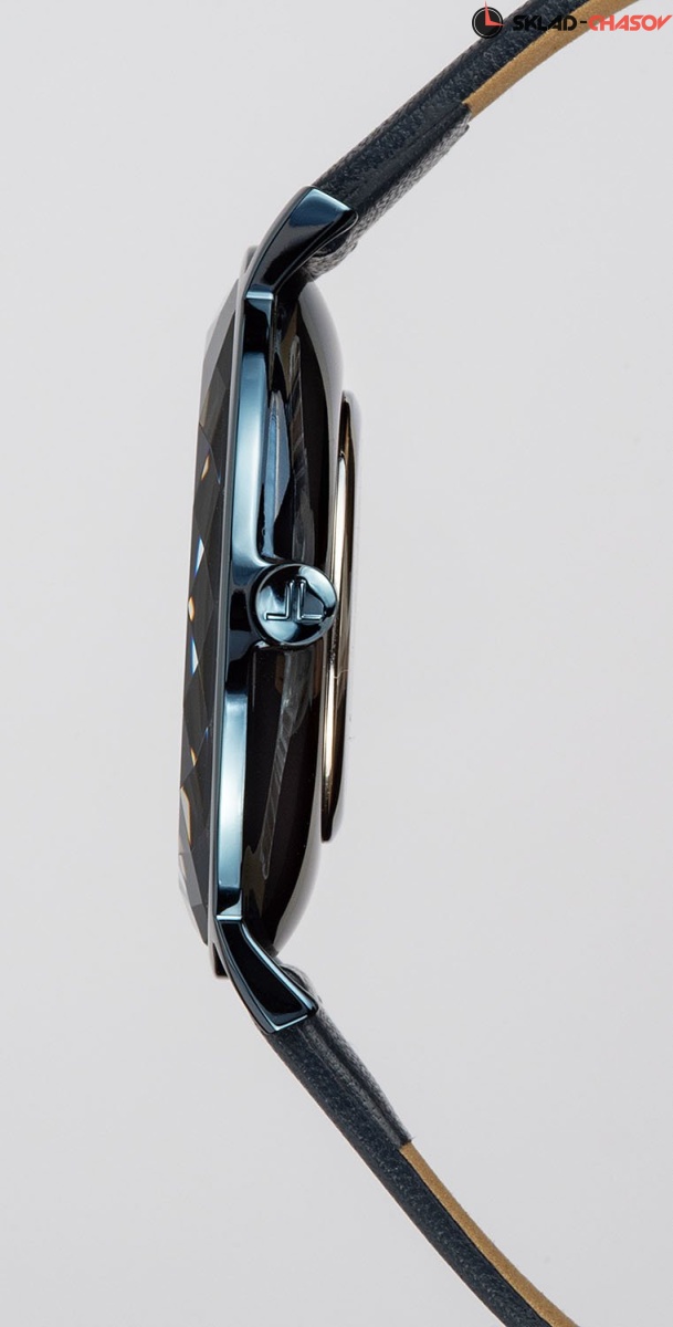 Элегантная женская модель из серии York. Круглый корпус из нержавеющей стали диаметром 37 мм декорирован PVD-покрытием насыщенного синего цвета. Он обрамляет синий циферблат с полировкой в виде солнечных лучей. Хорошо читаются лаконичные риски и стрелки часов и минут. Настоящее украшение модели — оригинальный объемный безель, сверкающий множеством граней. В часах установлено ударопрочное минеральное стекло Crystex. Синий ремешок выполнен из натуральной кожи. Эти часы - идеальный аксессуар для успешного и стильного образа.