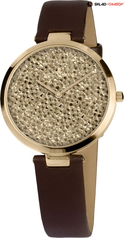 Волшебные женские часы из серии Milano от Jacques Lemans. Диаметр корпуса из прочной нержавеющей стали с покрытием желтого золота составляет 36 мм. Блестящий циферблат полностью покрыт кристаллами Swarovski золотистого цвета. В часах c кварцевым механизмом установлено закаленное стекло Сrystex. Водонепроницаемость до 5ATM. Коричневый ремешок из натуральной кожи с застежкой-пряжкой превосходно дополняет гламурный образ модели.