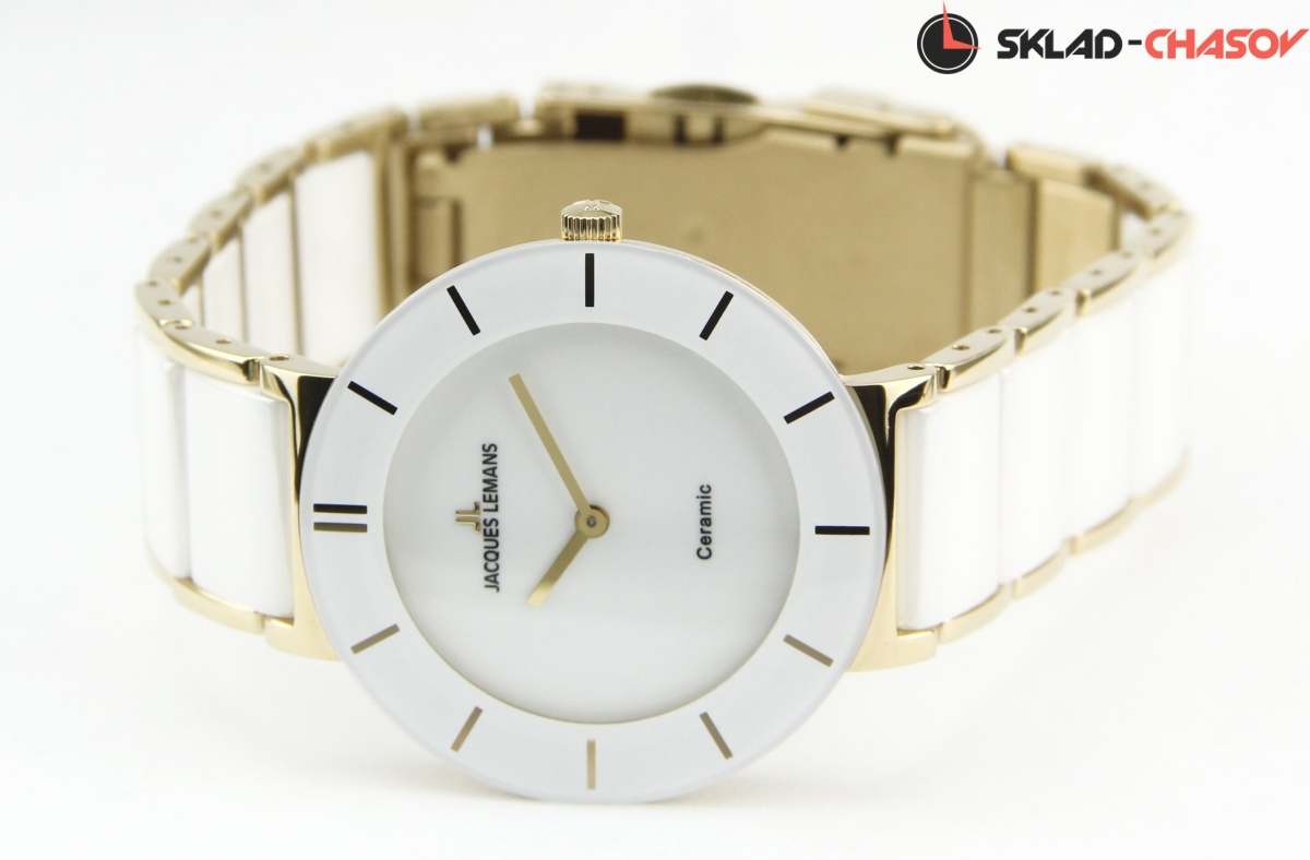 • Литой браслет с керамическими вставками, браслетная застежка, раскладывающаяся при нажатии на кнопки.