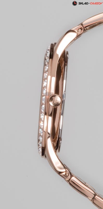 • Корпус и браслет выполнены из нержавеющей стали 316L, поверхности с чередующейся матовой (сатинирование) и полированной обработкой. Часы округлой формы с полным стойким PVD-покрытием цвета розового золота.