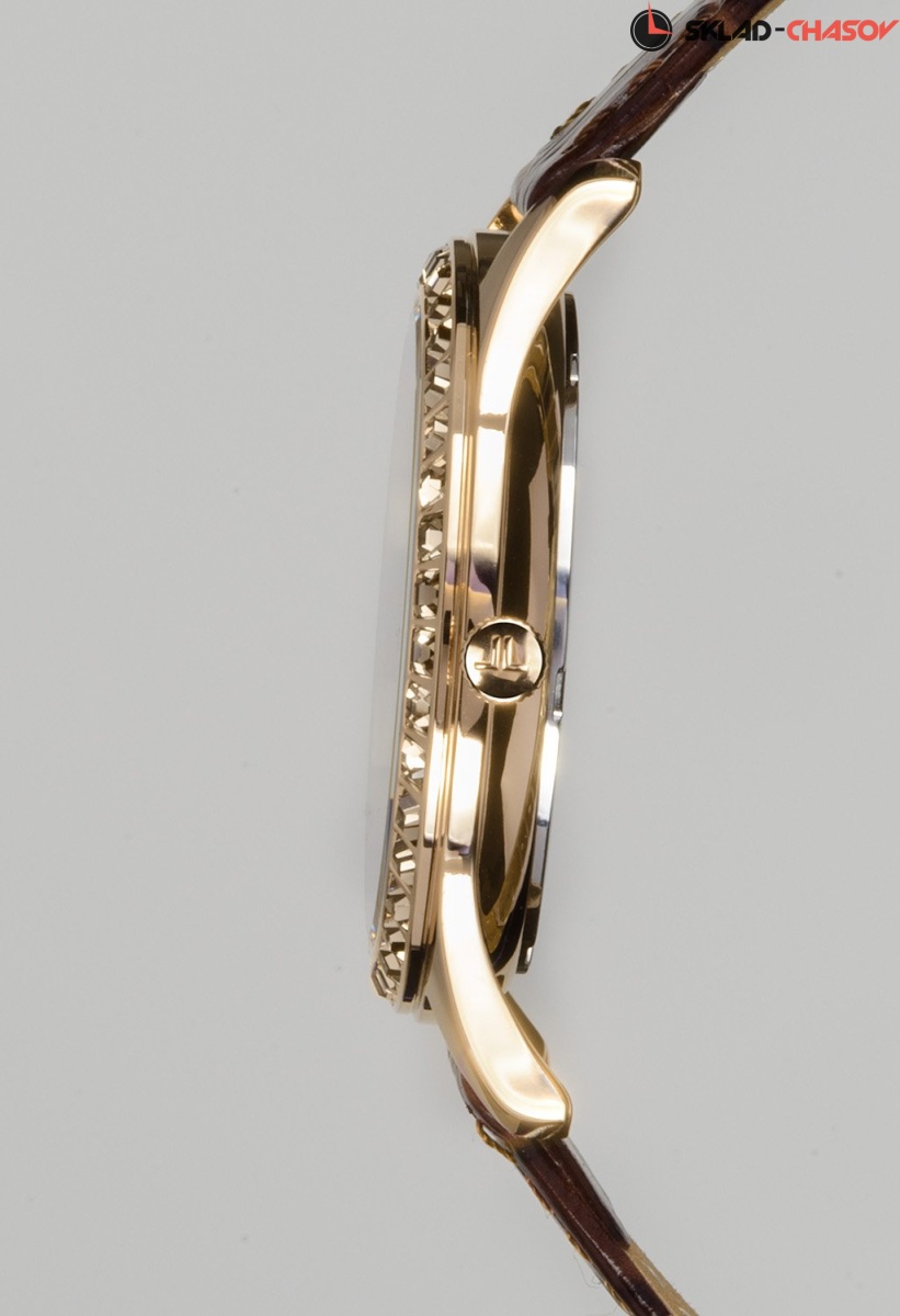 • Японский кварцевый механизм с аналоговой индикацией. • Точность хода с погрешностью не более -/+20 сек. в месяц. • Центральные часовая, минутная и секундная стрелки. • Корпус выполнен из нержавеющей стали 316L, поверхности с полировкой до зеркального блеска. • Диаметр корпуса составляет 37 мм. • Стойкое IP-покрытие цвета золота. • Фирменное минеральное стекло с покрытием Crystex с повышенной стойкостью к возникновению царапин. • Циферблат с инкрустацией кристаллами Swarovski или глянцевой поверхностью и аппликацией римских цифр и часовых меток. • Задняя крышка имеет винтовое соединение с корпусом. • Водостойкость 100 метров (10 АТМ). • Кожаный ремешок с тиснением «под аллигатора», стандартная застежка с шипом.