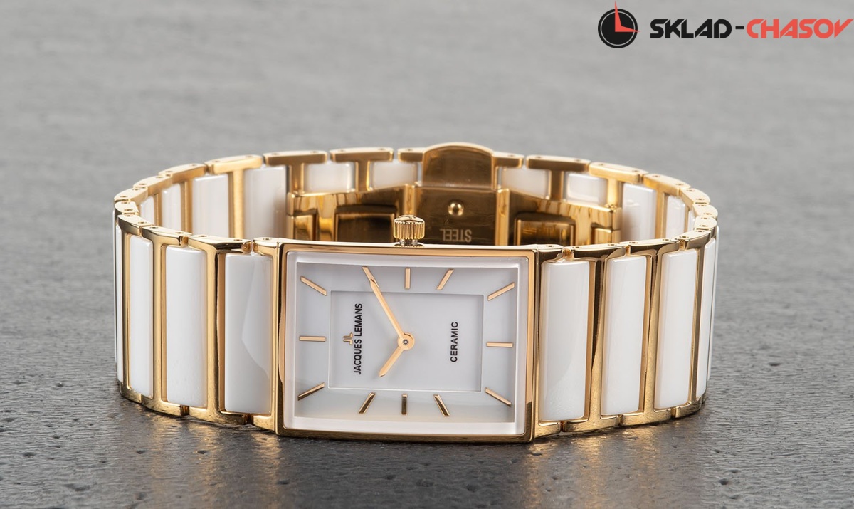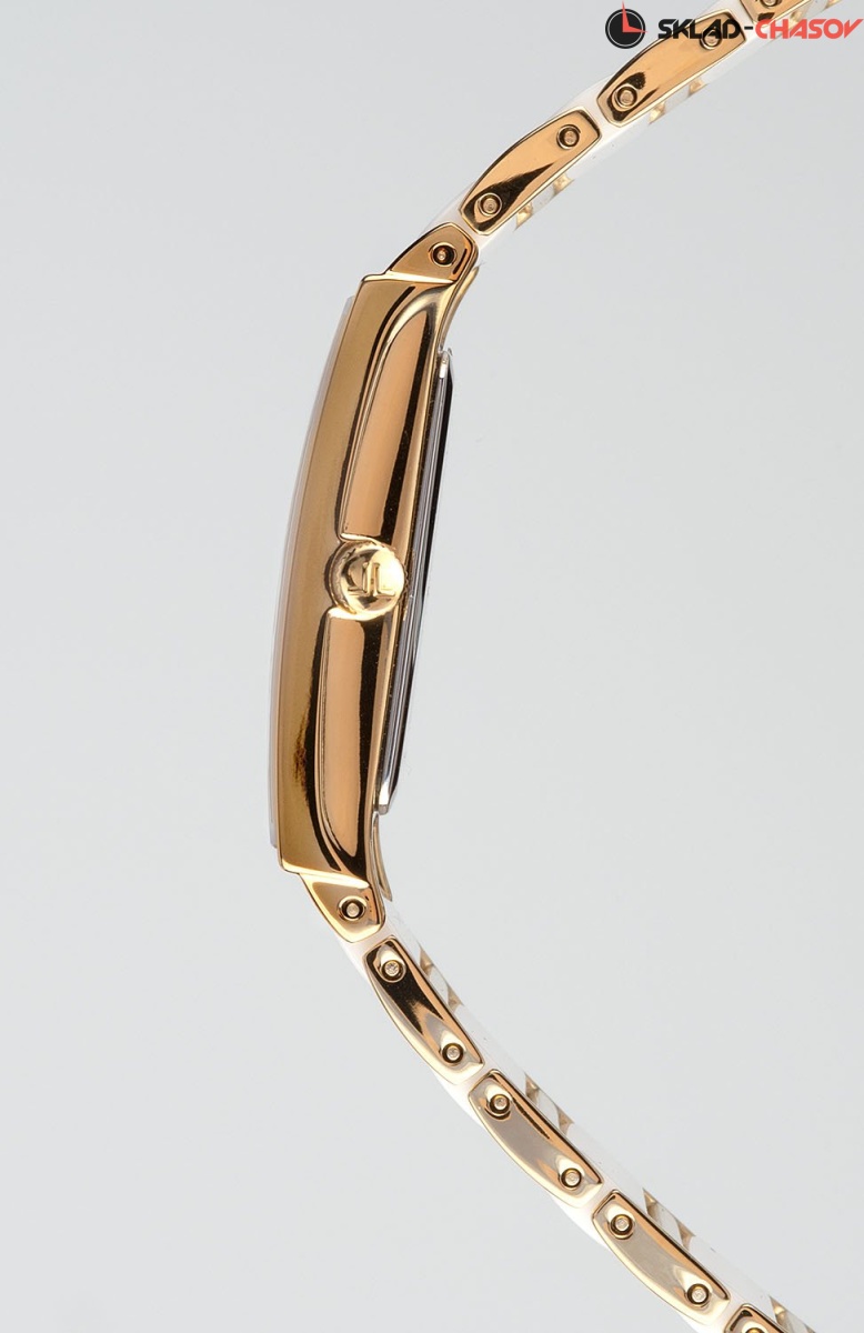 Точный кварцевый механизм TMI. Часовая и минутная стрелки. • Точность хода не хуже -/+20 сек./в месяц. • Минеральное стекло. • Корпус из высококачественной нержавеющей стали со стойким PVD покрытием. • Водозащита до 5 АТМ. • Литой браслет из нержавеющей стали с керамическими вставками. • Браслетный замок типа 'бабочка' расстегиваемый одним касанием. • Размер корпуса 20х30 мм.