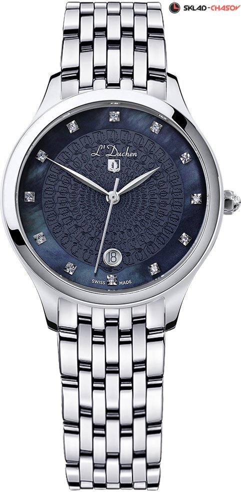 • Циферблат из перламутра, центральная часть с гильошированием, инкрустация искусственных кристаллов в качестве часовых индексов.