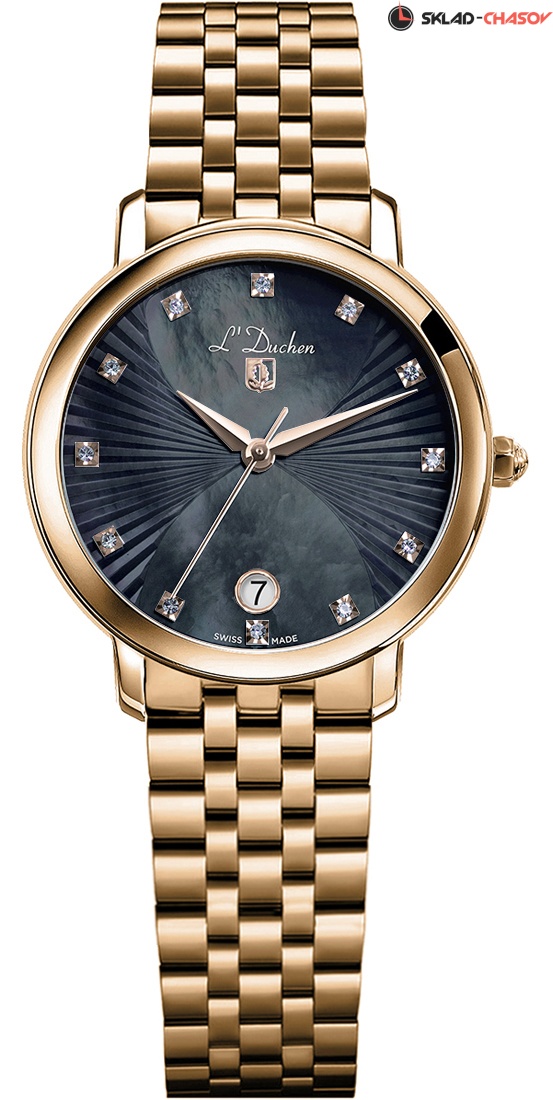 • Циферблат из перламутра, частично с гильошированием, инкрустация искусственных кристаллов в качестве часовых индексов.