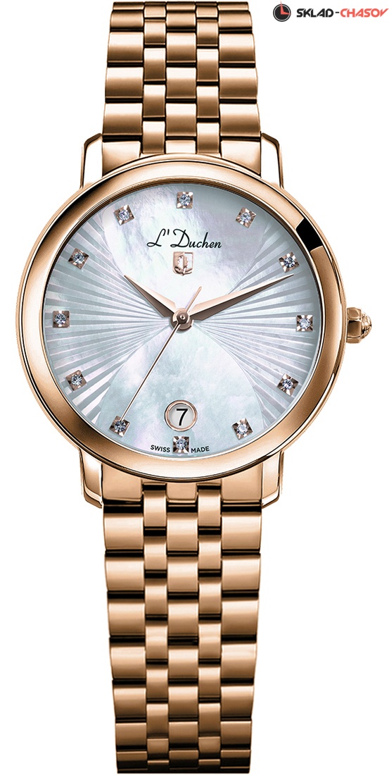 • Циферблат из перламутра, частично с гильошированием, инкрустация искусственных кристаллов в качестве часовых индексов.
