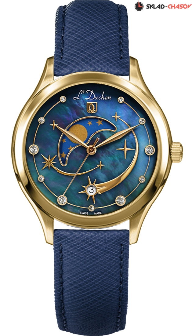 По задумке дизайнеров на циферблате часов синего цвета мы можем наблюдать завораживающее космическое явление: метеорный поток Персеиды. Падающие «звезды» присутствуют в виде фианитов разного размера и накладных элементов из стали. В верхней части циферблата из натурального перламутра расположен индикатор фаз луны, который элегантно декорирован металлической рамкой. На шести часах размещен указатель даты, оформленный в виде звезды. Часы Perceides прекрасно можно сочетать с другими аксессуарами и украшениями.