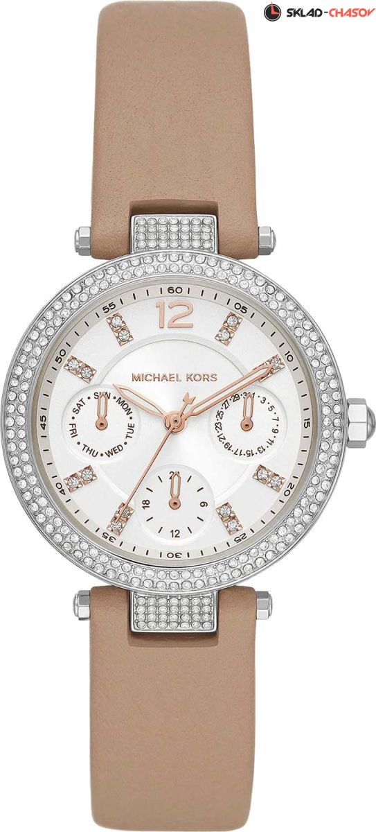 Женские кварцевые наручные часы на кожаном ремешке. 12-ти и 24-х часовой формат времени. Число и день недели отображаются на отдельных циферблатах. Корпус и циферблат украшены кристаллами Swarovski. Ремешок с классической застежкой. Гарантия 2 года.