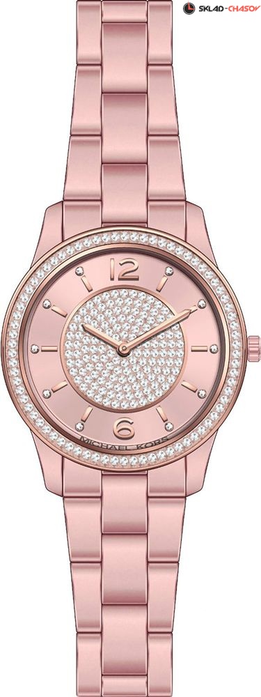 Циферблат и корпус украшены кристаллами.